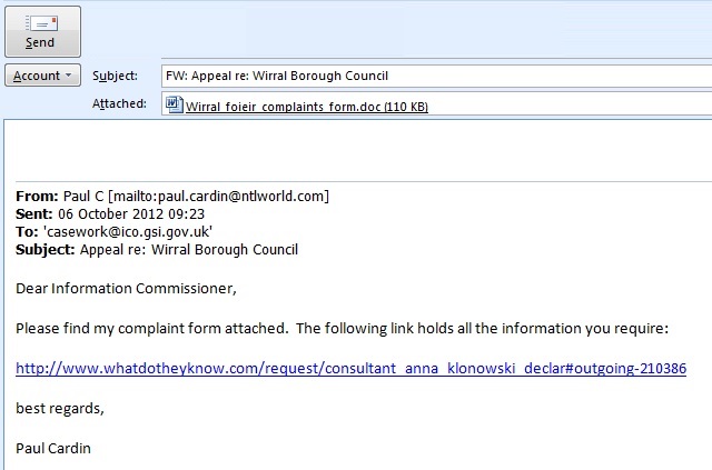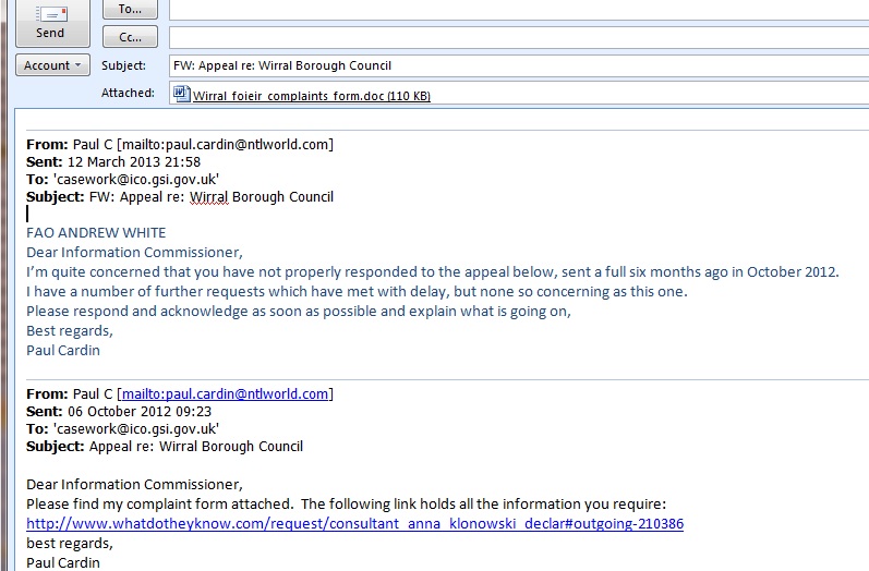 In light of the Information Commissioner seeking a signed undertaking from the Wirral CEO Mr Burgess to take his Freedom of Information obligations seriously, please answer the email I sent to you on 15th May 2013 (below).