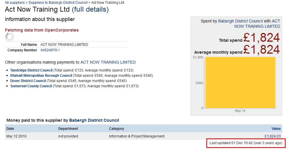 I then browsed over to OpenlyLocal.com, the website that was set up with the stated interest of “Making Local Government More Transparent”. Check out my very quick look at its performance here. Here, I found two companies associated with Ibraham Hasan; the above mentioned “Hasan Associates” and another, the previously mentioned “Act Now Training Ltd”.
