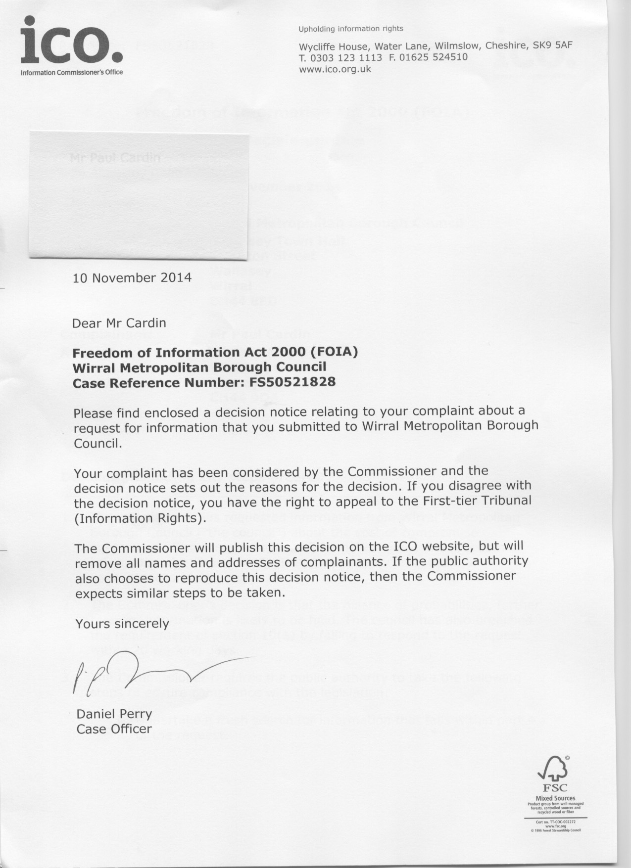I appealed to the ICO, and so it came to pass. Check out this Decision Notice which arrived today, confirming my worst fears: