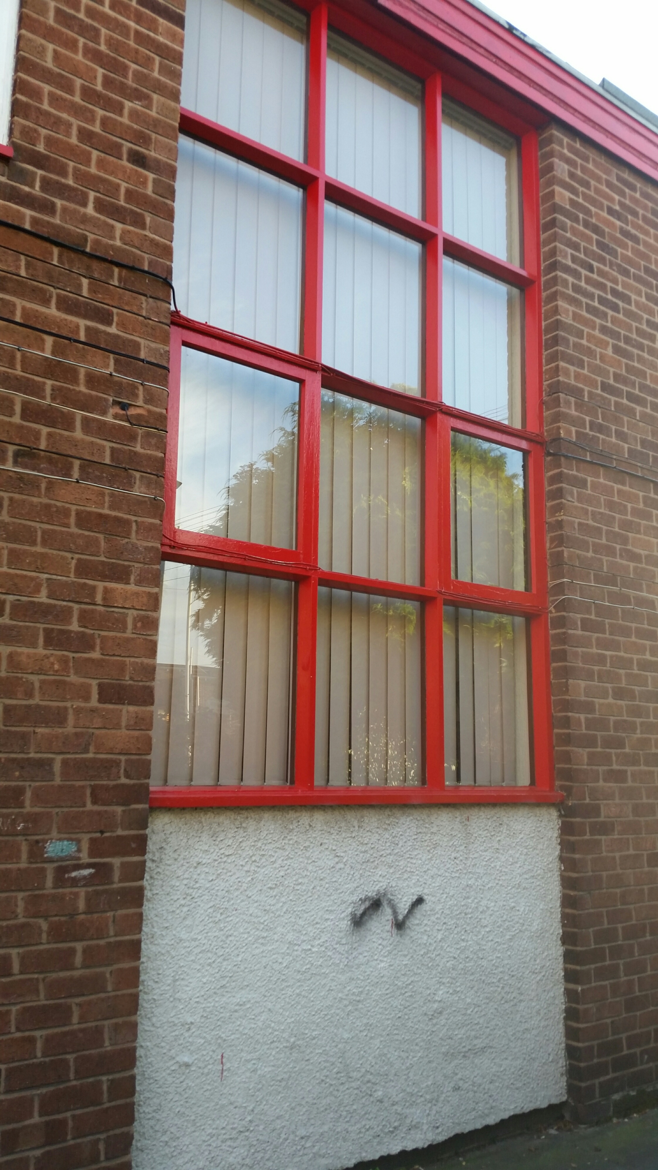 Eastern communal stairwell windows – bottom left is the repaired pane of glass.