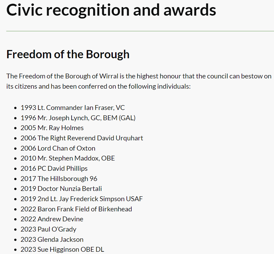 All about how the grand old institution of FREEDOM OF THE BOROUGH OF WIRRAL has been soiled by filthy corruption and favours for ‘MATES’…