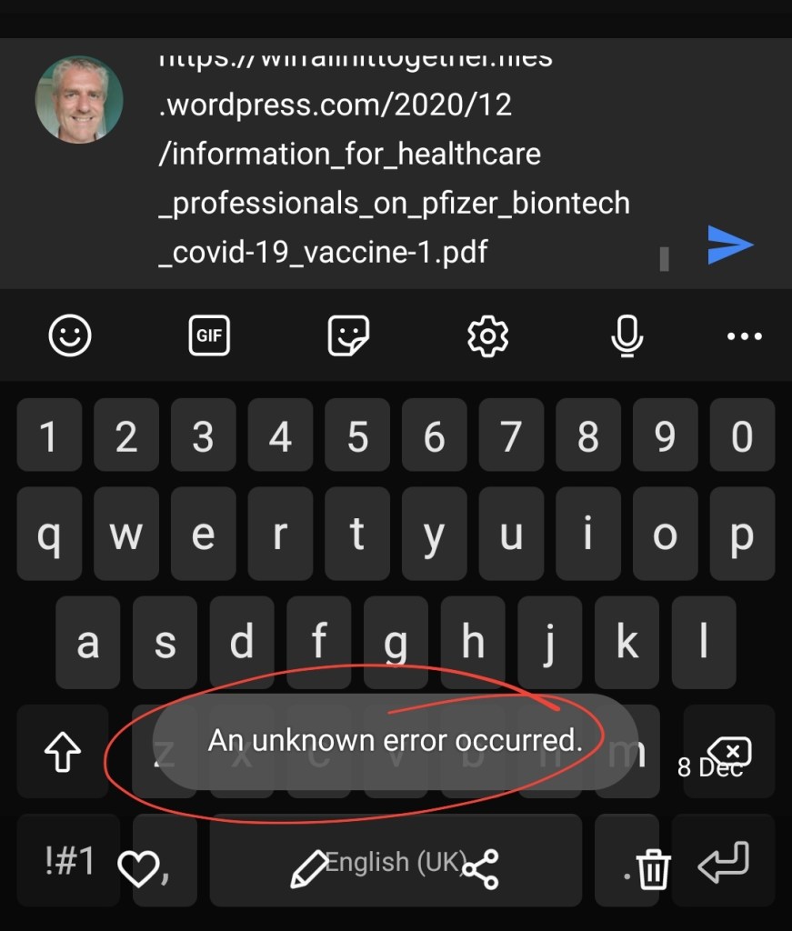 Here’s the offending message that is now being blocked as YouTube infringe our Article 10 human right to speak freely and impart information. What makes this doubly puzzling is the fact that they are censoring official government sourced information, this being the Covid19 Pfizer / BioNTech vaccine concerns of the MHRA regulator within their “Information for Healthcare Professionals” document:
