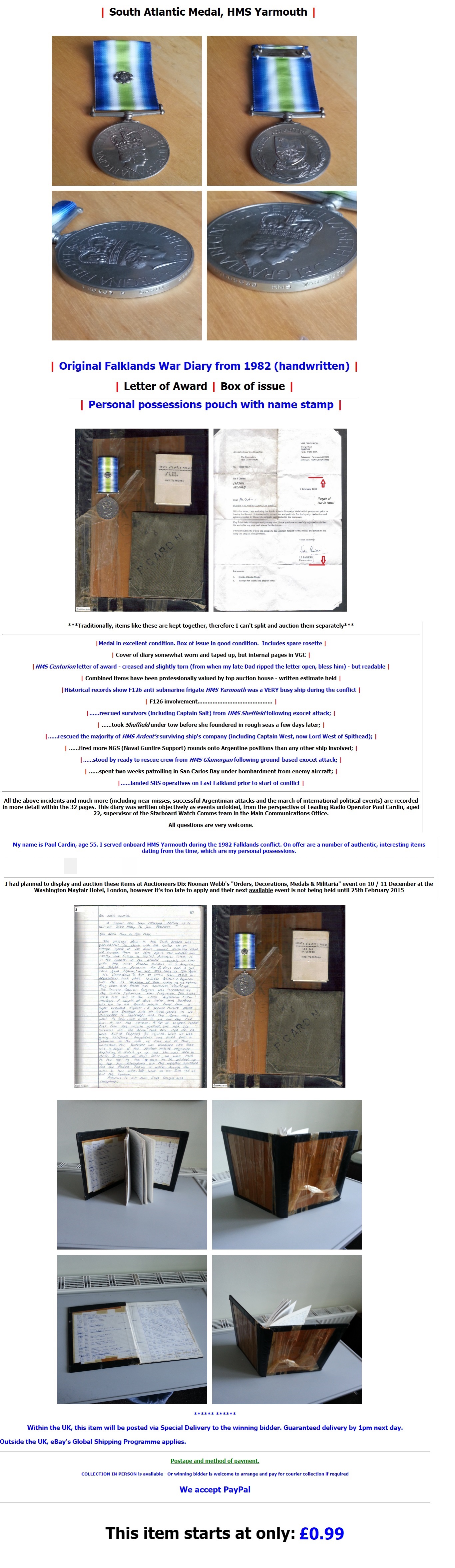 Back in 2014 I had to sell my Falklands medal and the original diary due to money worries. I’d managed to hang onto them since retiring and losing my salary, but I had a wife and two young girls to look after – which I still do now – things got a little tense and fraught with the finances, so it had to go…!