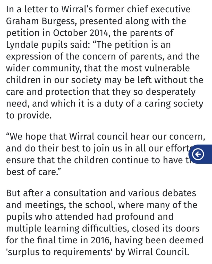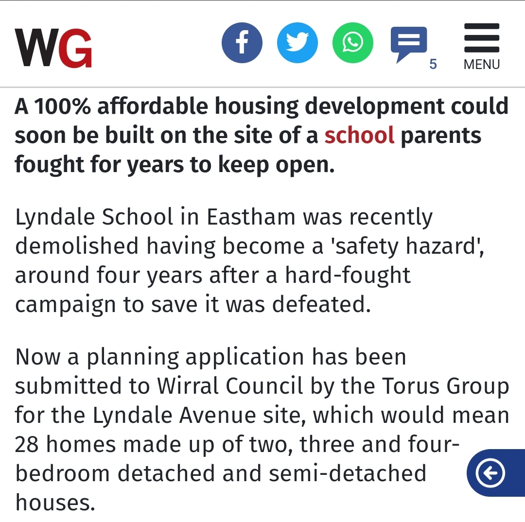 1 Response to Lyndale Special Needs School was closed and demolished by Wirral Council CEO Graham Burgess. Profitable new houses were built on the cleared site by Chairman of Torus Housing………..the same Graham Burgess. And the Wirral Globe covered the story but said nothing and DIDN’T REPORT THE FOUL STENCH of probable corruption