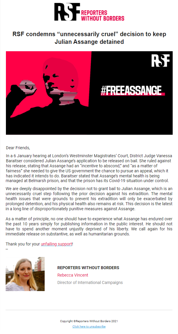 Pingback: Reporters Without Borders Condemns “Unnecessarily Cruel” Decision to Keep Julian Assange Detained | Wirral In It Together | Tory Britain!