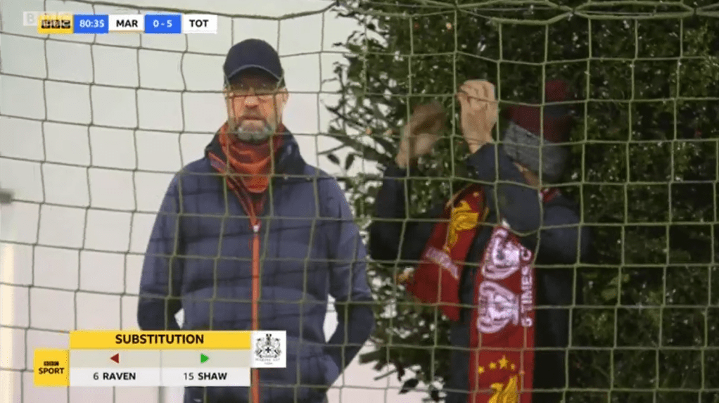 Looking a bit thin, like he’s lost a bit of weight, look who turned up at Marine V Tottenham