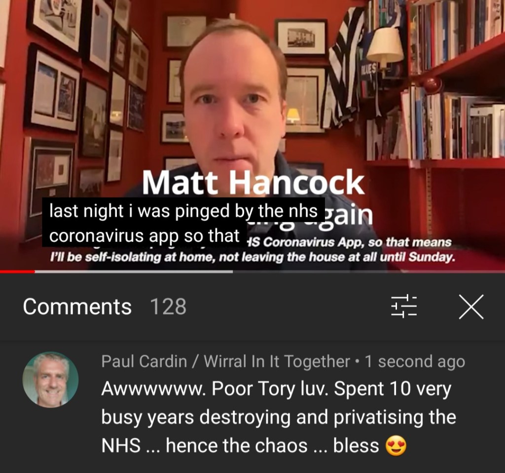Watch “Matt Hancock self isolating again after Test and Trace alert” on YouTube