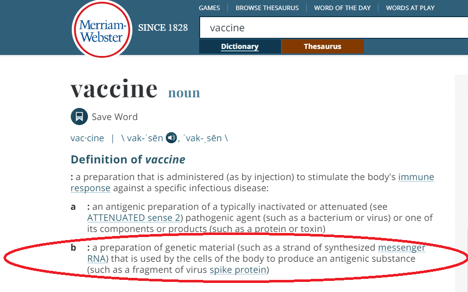 It looks like those obedient, credulous, unquestioning folk at Merriam Webster have recently been instructed by persons unknown to ADD ANOTHER DEFINITION to the word “Vaccine”