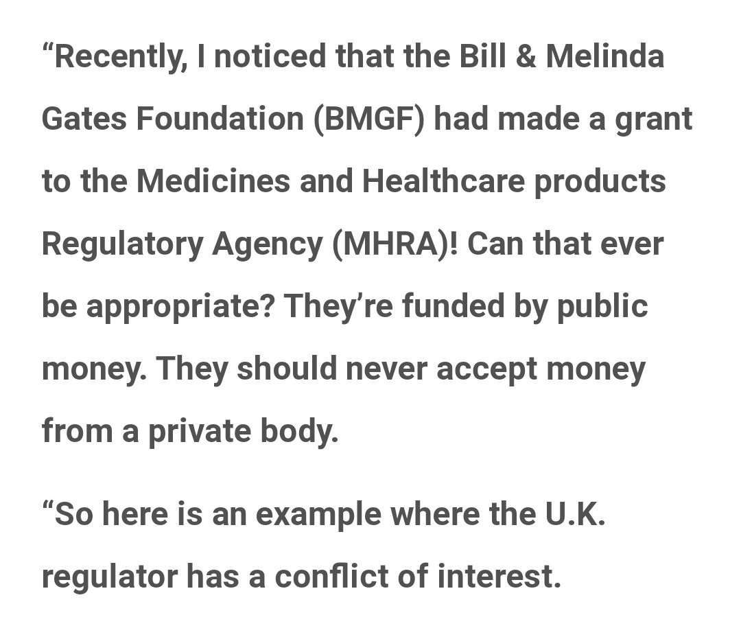 The sprawling, trawling, global net of Mr Bill Gates has been cast wider than many people think. Here’s former Pfizer Vice-president and Chief Scientist Mike Yeadon on Gates’ funding of a one time impartial but now captured and capitulated UK public regulatory body: