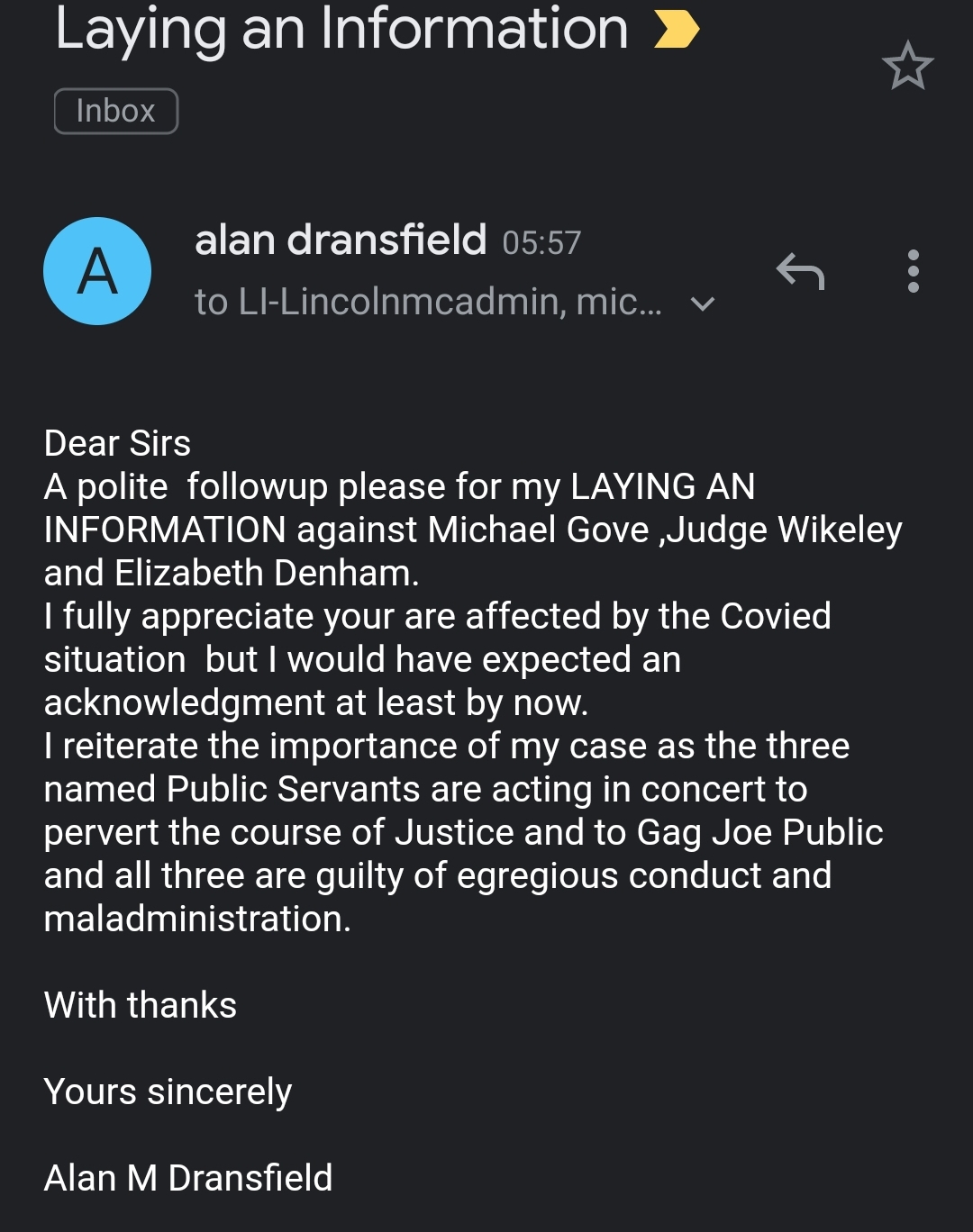Pingback: Dransfield v Elizabeth Denham/Judge Wikeley/Michael Gove | Wirral In It Together