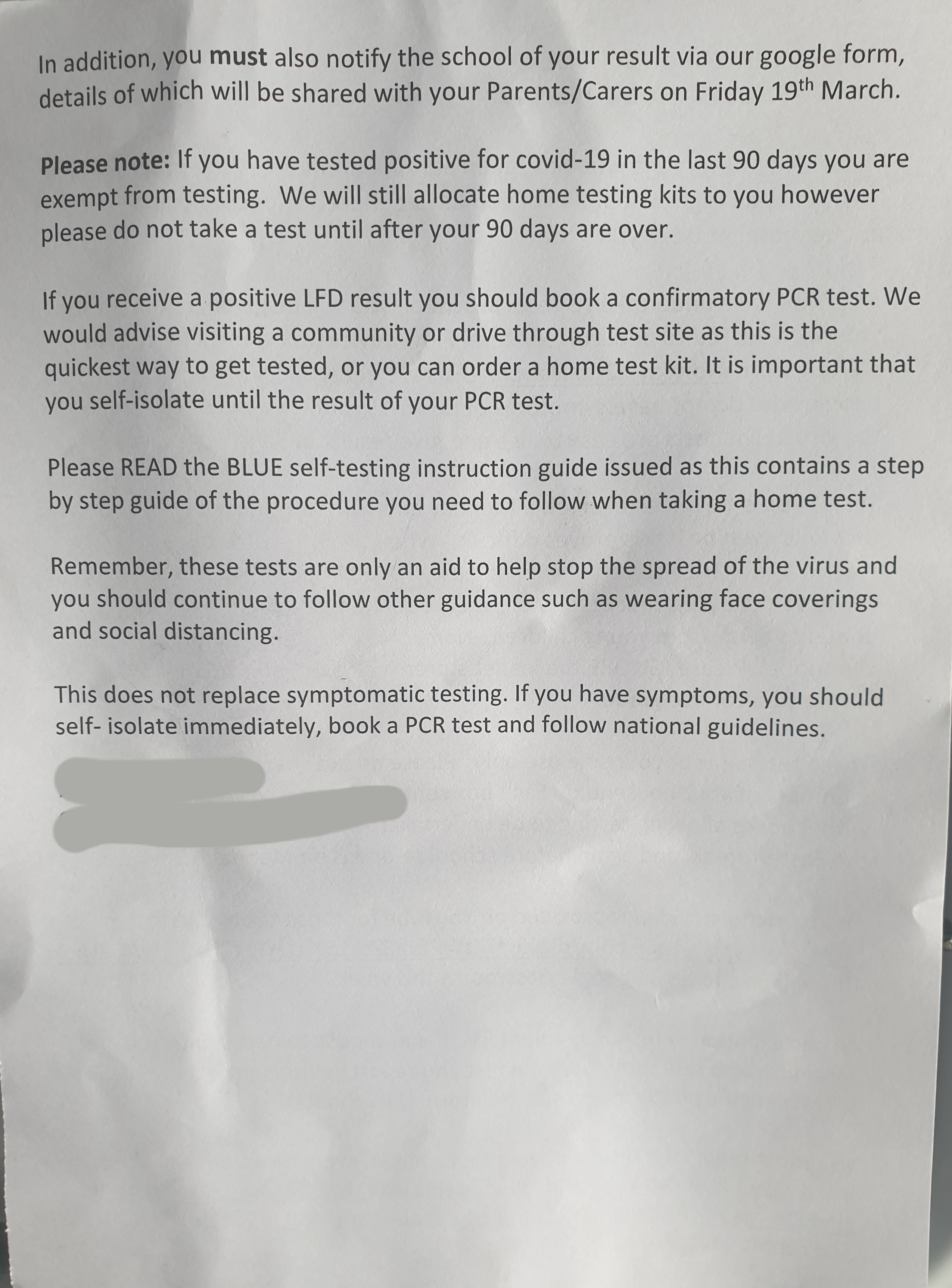 I’m sure you’ll appreciate that due to the school’s failure to ascertain / point out the above vitally important information, I’m not happy for my daughter to go ahead with these voluntary tests.