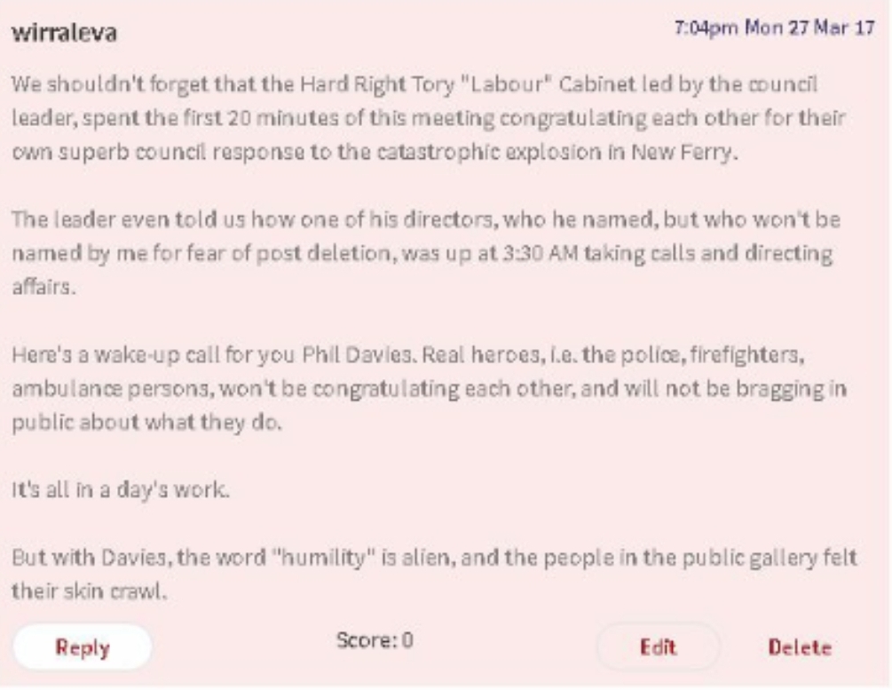 The New Ferry Explosion which devasted the town centre four years ago. Here, watch these events being hijacked for useful publicity by the then Council Leader.