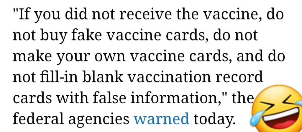US govt warns that buying fake COVID-19 vaccine cards is a crime