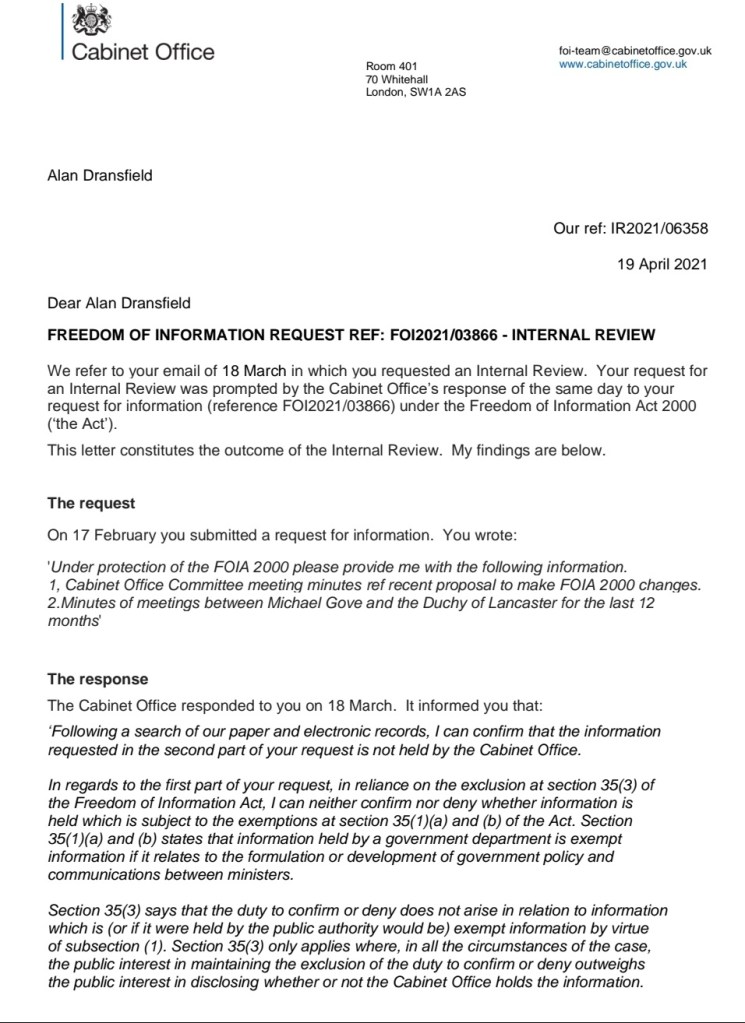 Pingback: Two Helpings of Complete and Utter Incoherent Bullshit from the UK Cabinet Office to the Vexatious King of Britain, Alan Dransfield — Wirral In It Together – New Human New Earth Communities