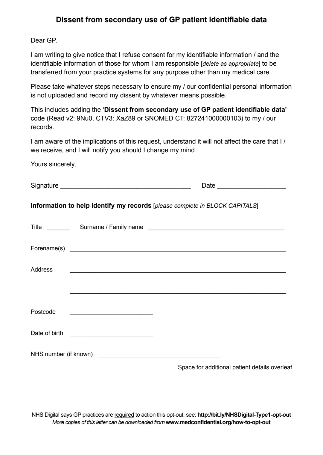 FILL IN AND SEND THIS FORM TO YOUR GP BEFORE THE DEADLINE OF 23RD JUNE 2021