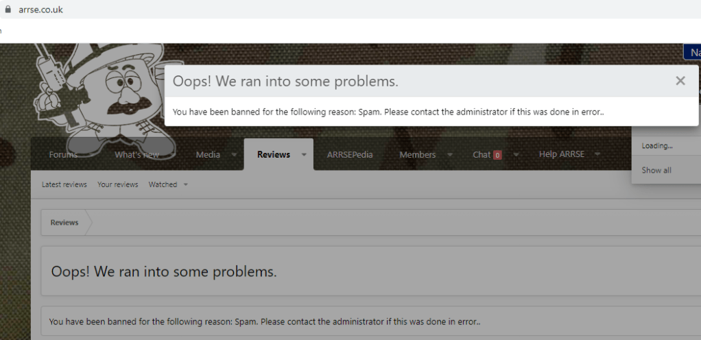 The British Army’s unofficial forum (ARRSE) blocks us for alleged ‘spam’ after we join and send two messages, then makes 14 creepy, failed attempts at tracking us. Someone needs to get a life!