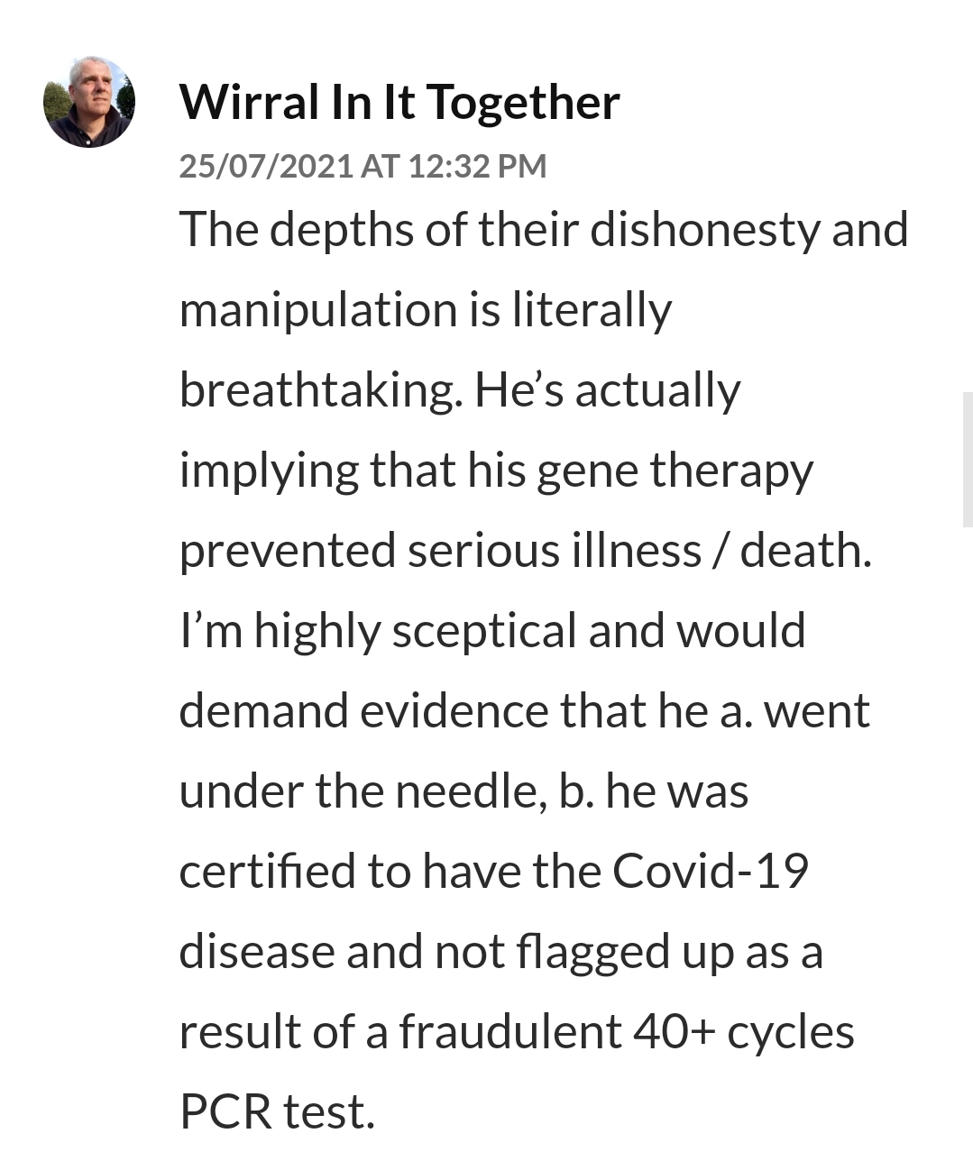 The depths of their dishonesty and manipulation is literally breathtaking. He’s actually implying that his gene therapy prevented serious illness / death