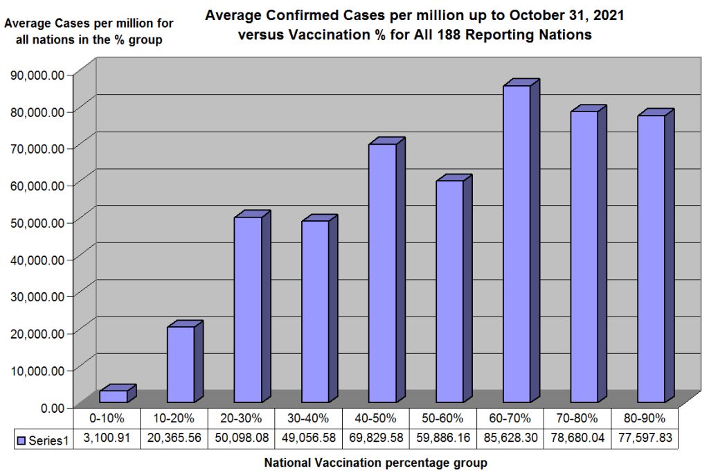 Worldwide data on 188 countries proves the highest Covid-19 case rates are in the most vaccinated countries.