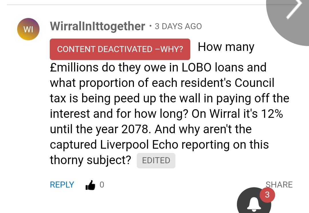 After about a minute, some stupid Echo employee deleted my post, thereby protecting their corrupted Wirral Council bedfellows: