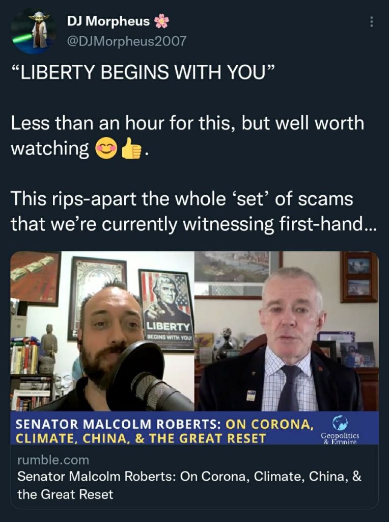 Senator Malcolm Roberts: On Corona, Climate, China, & the Great Reset