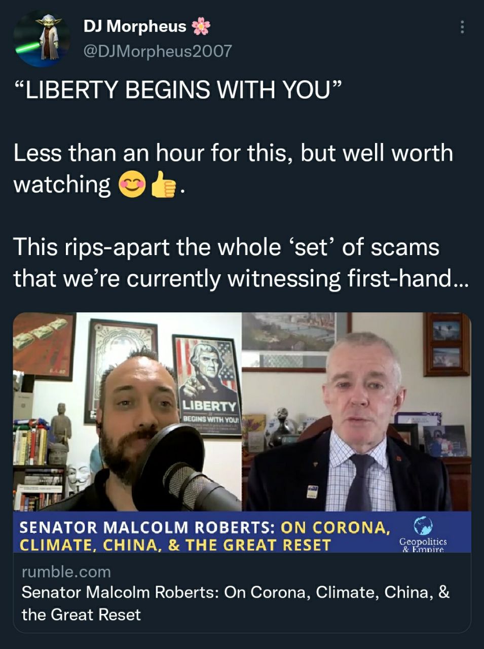 Senator Malcolm Roberts: On Corona, Climate, China, & the Great Reset