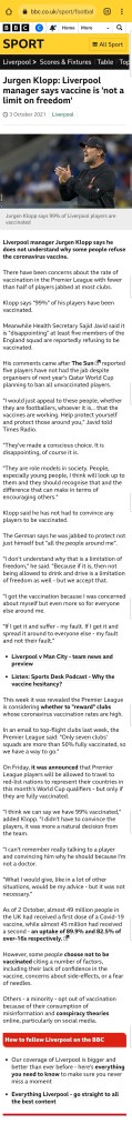 Pingback: Jurgen Klopp: Liverpool manager says vaccine is ‘not a limit on freedom’ | Wirral In It Together