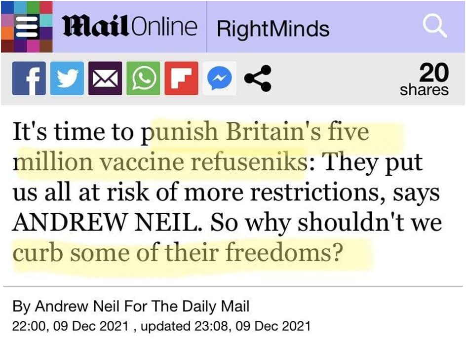 What Andrew Neil fails to realise is that those that fall out of the government’s definition of “fully vaccinated” are joining another tribe.