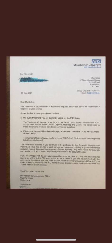 The UK uses 45 cycles, which results in at least a 93% false positive rate. PCR testing is a huge fraud being carried out by our government. Dominic Raab also admited 93% false positives. This fraudulent testing is the basis of a global scam.