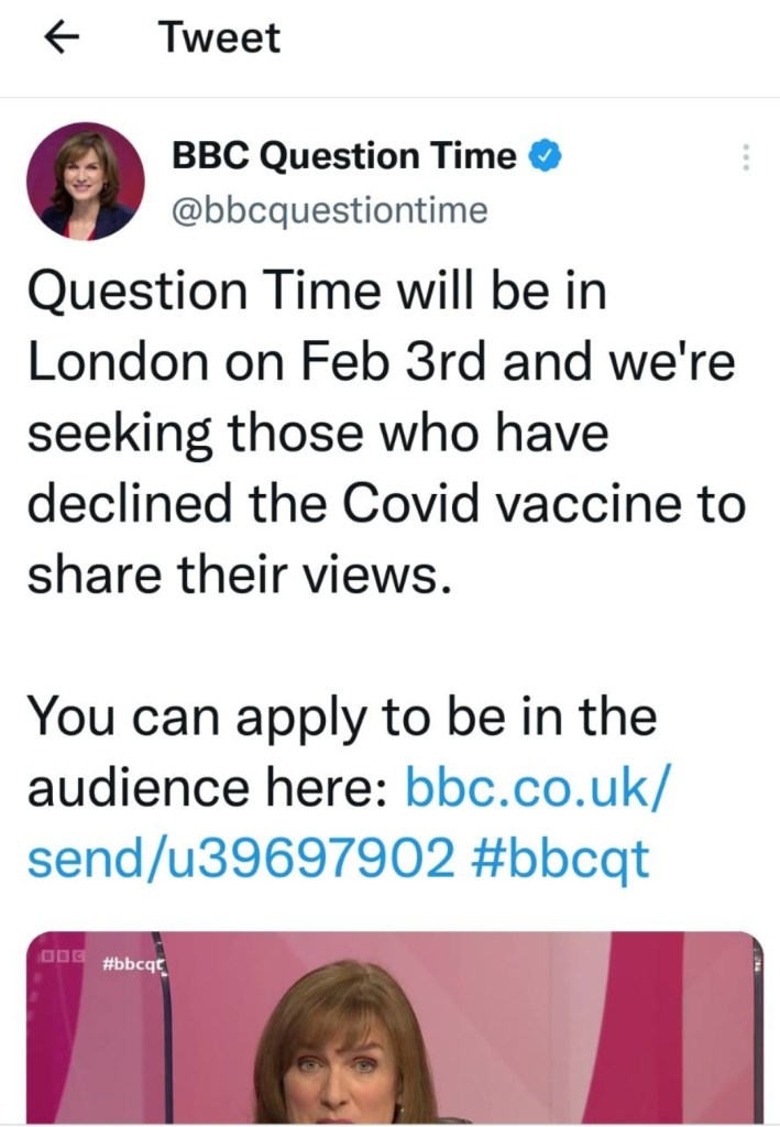 The UK Establishment’s propaganda arm are inviting sensible people to their studios!