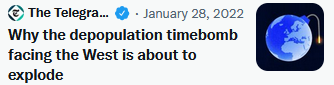 In the piece to hand here, he introduces some toxic concepts…. and the general impression one forms is that he wants to legitimise depopulation – not as a policy, but as something that already exists, and is thus entirely normal. Just like footballers keeling over, and the miscarriage rate going through the roof (of which, there’s more below).