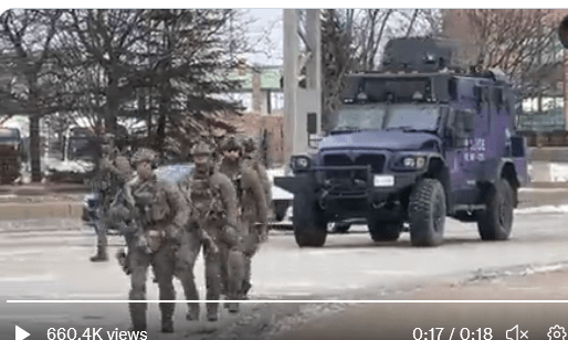 A militarized show of force was used to clear the area of truckers and supporters protesting insane authoritarian mandates. They had snarled traffic and blocked the key trade crossing in Windsor, Ontario.
