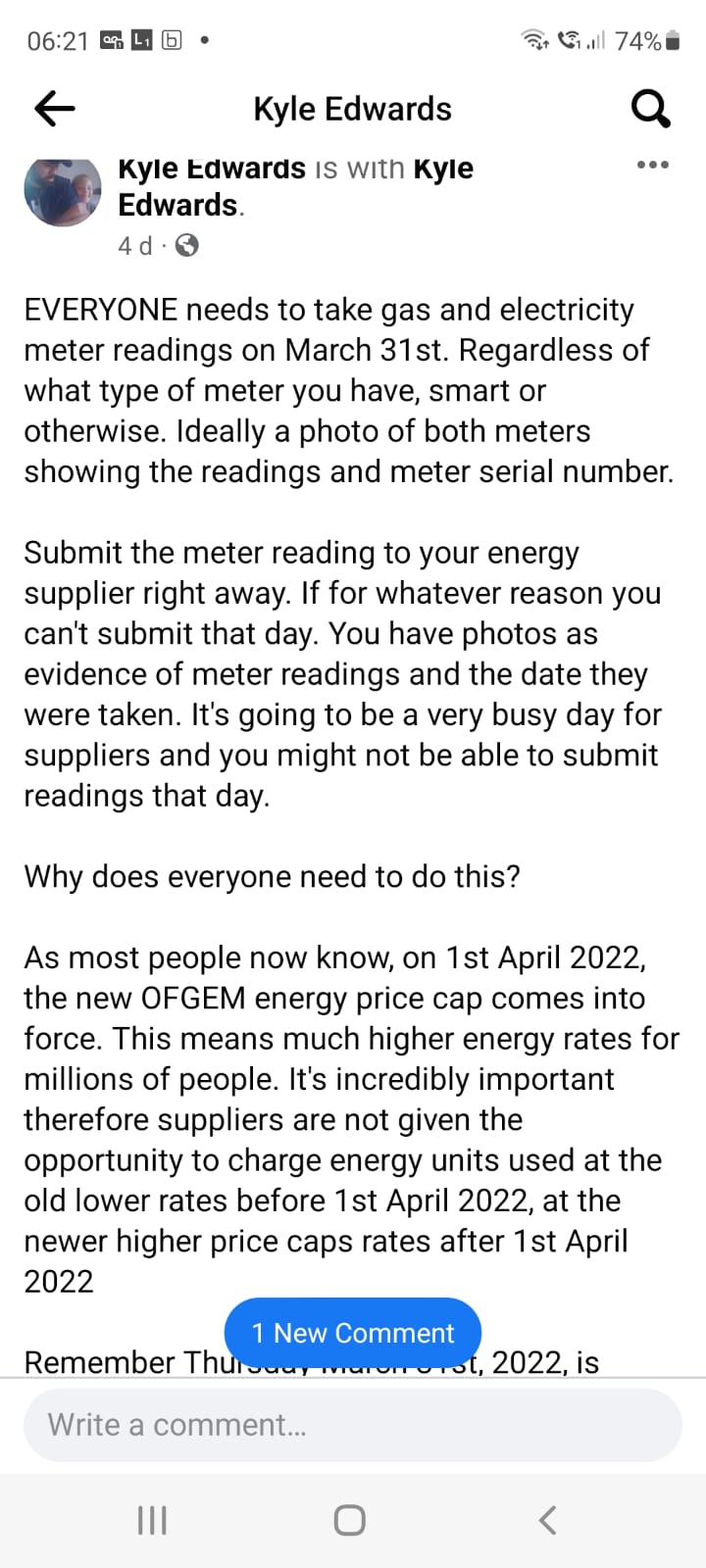 🇬🇧 UK. ⚠️ Everyone Needs to Take Gas and Electricity Meter Readings on 31st March 2022