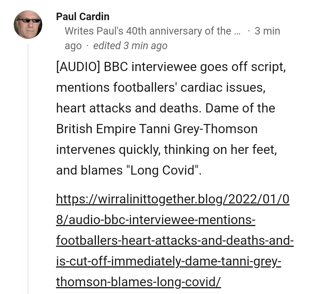 So NOT long Covid, but a very different subject, i.e. the impact of the gene therapy / ‘vaccines’ that the players had taken and were now worried, having…