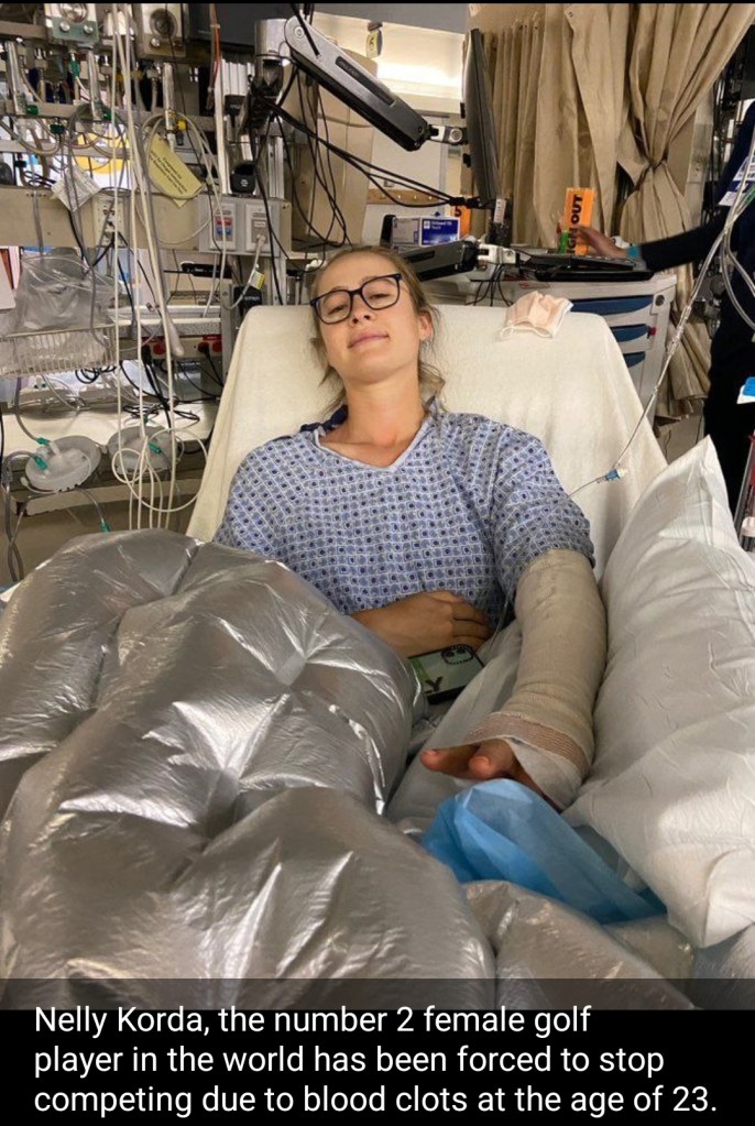 Nelly Korda, the number 2 female golf player in the world has been forced to stop competing due to blood clots at the age of 23.