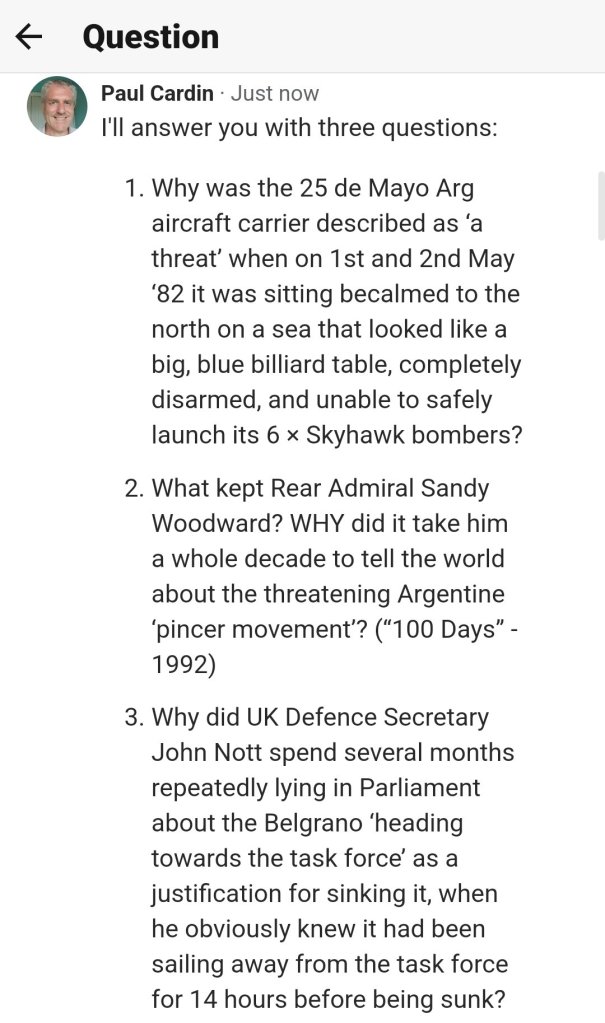 Question on @Quora: What was Argentina thinking when they sent the General Belgrano to attack the British fleet in the Falklands war, considering the maximum range of her guns was only thirteen miles? https://www.quora.com/What-was-Argentina-thinking-when-they-sent-the-General-Belgrano-to-attack-the-British-fleet-in-the-Falklands-war-considering-the-maximum-range-of-her-guns-was-only-thirteen-miles?ch=18&oid=37432190&share=1323772d&srid=ulXsr&target_type=question