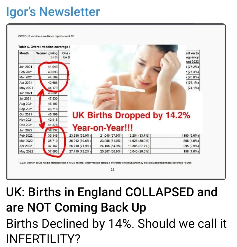 We all know what was going on 9 months prior to January-May of 2022. The UK was busy vaccinating its fertile and pregnant women, claiming that “Covid vaccine is safe for pregnancy”.