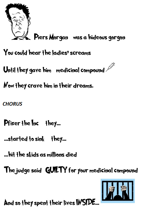 This was a harmless and slightly embarrassing (for me the performer) satirical song.