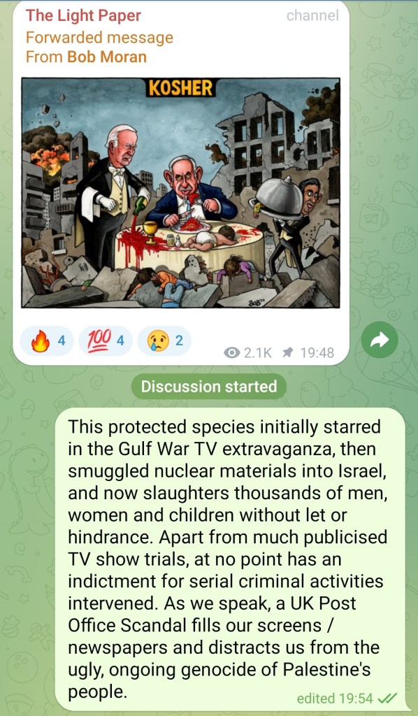 • Well-connected toffs, living it up, proclaiming they defend free speech when they don’t, AND compounding the matter by promoting the Zionist-backed Free Speech Union, who won’t acknowledge there’s a genocide unfolding in Gaza
