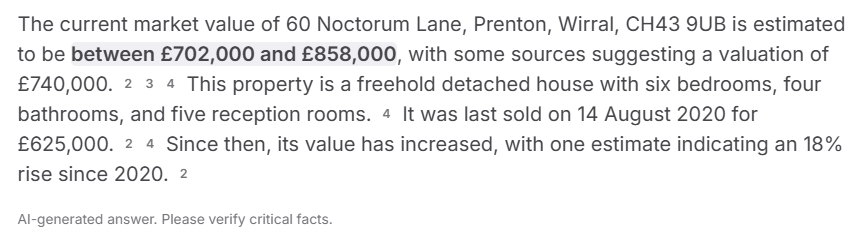 New Council leader Paula Basnett’s gaff at 60 Noctorum Lane, Birkenhead has appreciated in value!