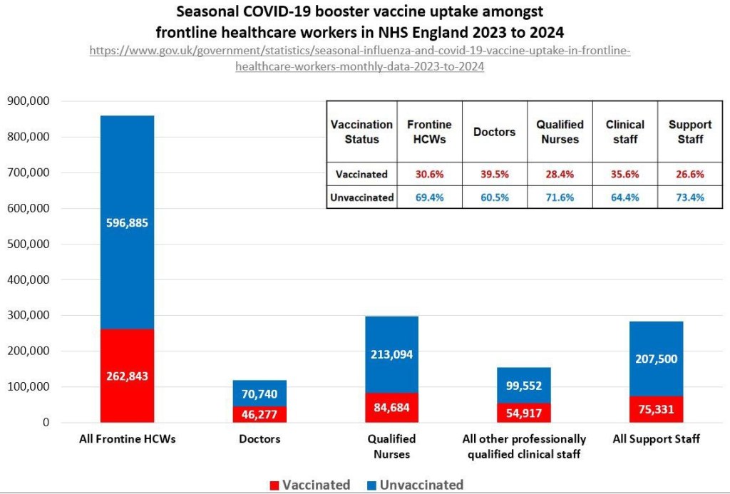 Latest report from UK Health Security Agency confirms that 70% of Frontline health care workers REFUSED the Covid-19 booster-vaccine in 2023/24