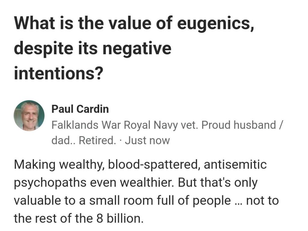 https://www.quora.com/What-is-the-value-of-eugenics-despite-its-negative-intentions/answer/Paul-Cardin?ch=18&oid=1477743755907639&share=ab735239&srid=ulXsr&target_type=answer