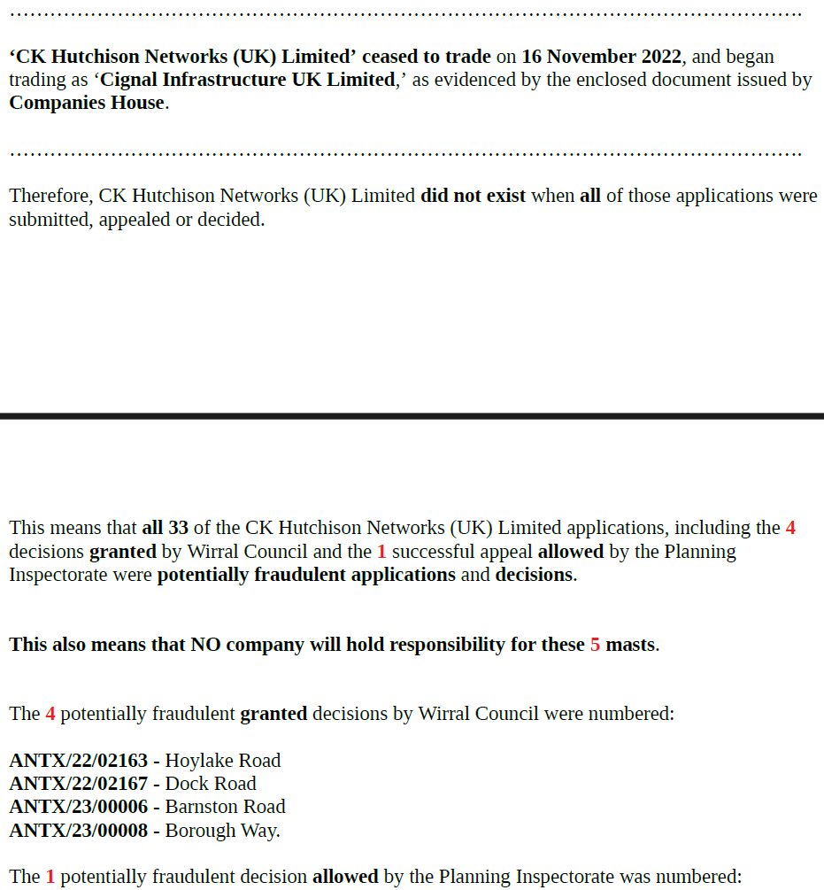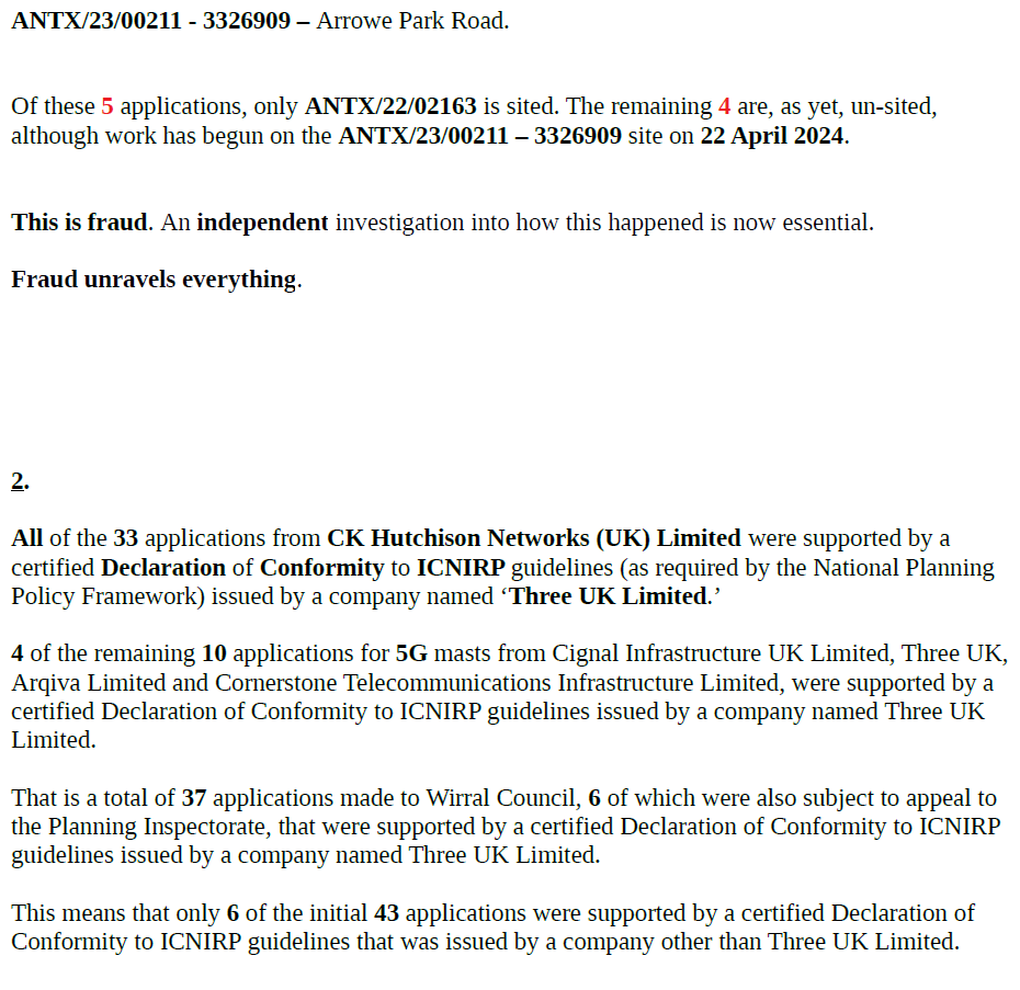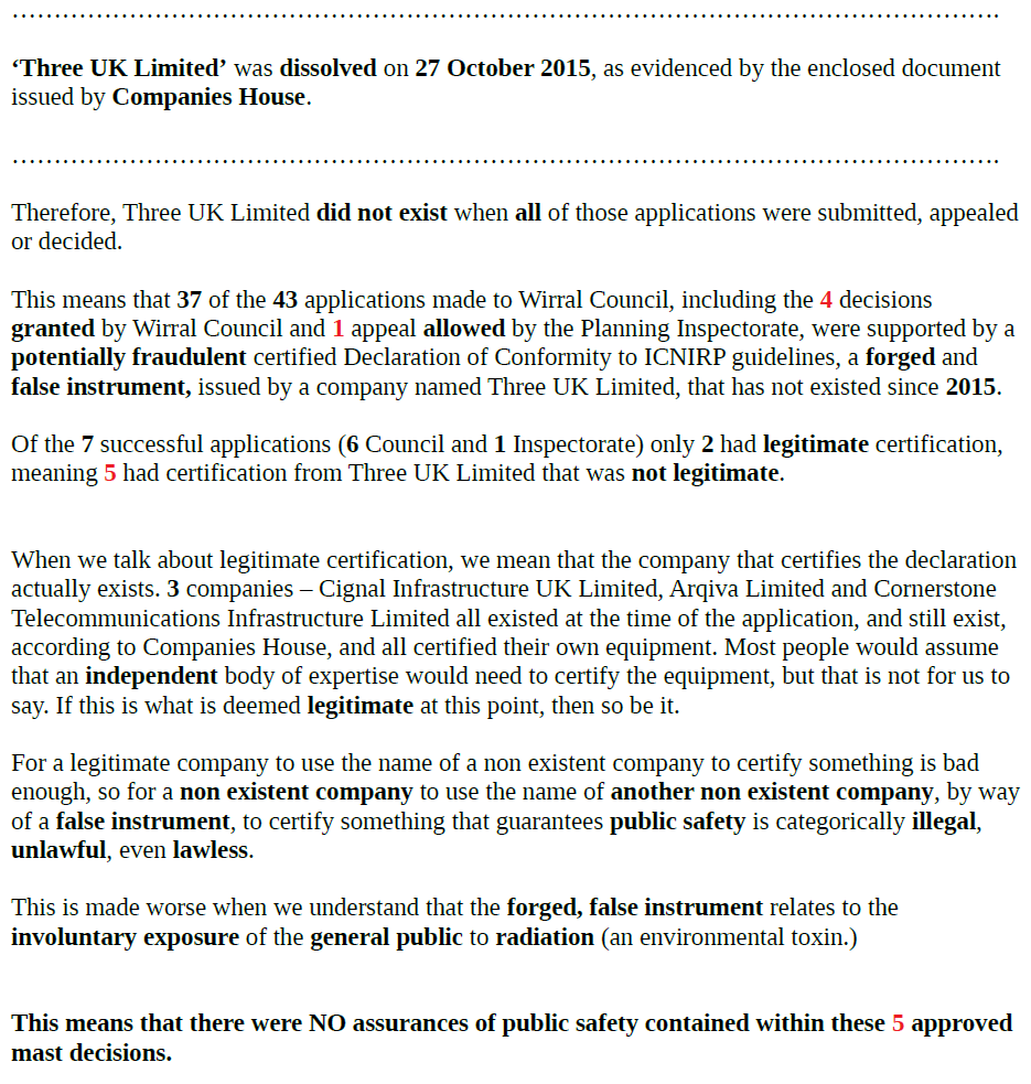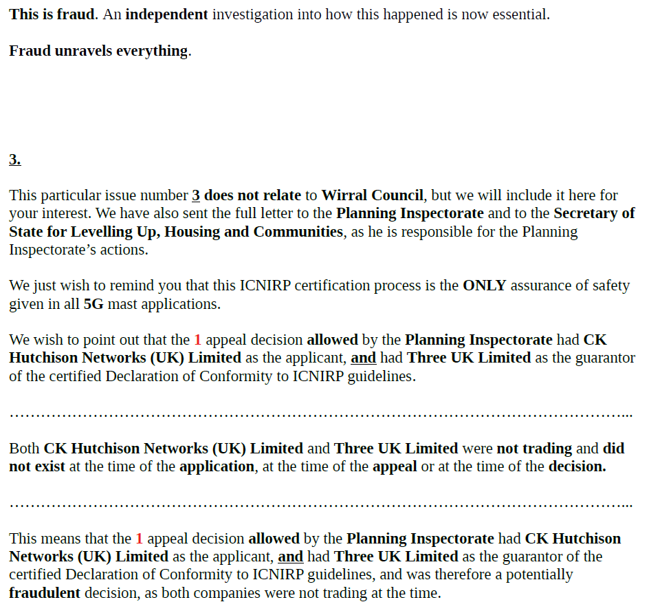 11 Responses to *BREAKING* | 5G Masts | Urgent Criminal Complaint sent today 29th April 2024 to Paul Satoor, CEO of Wirral Metropolitan Borough Council