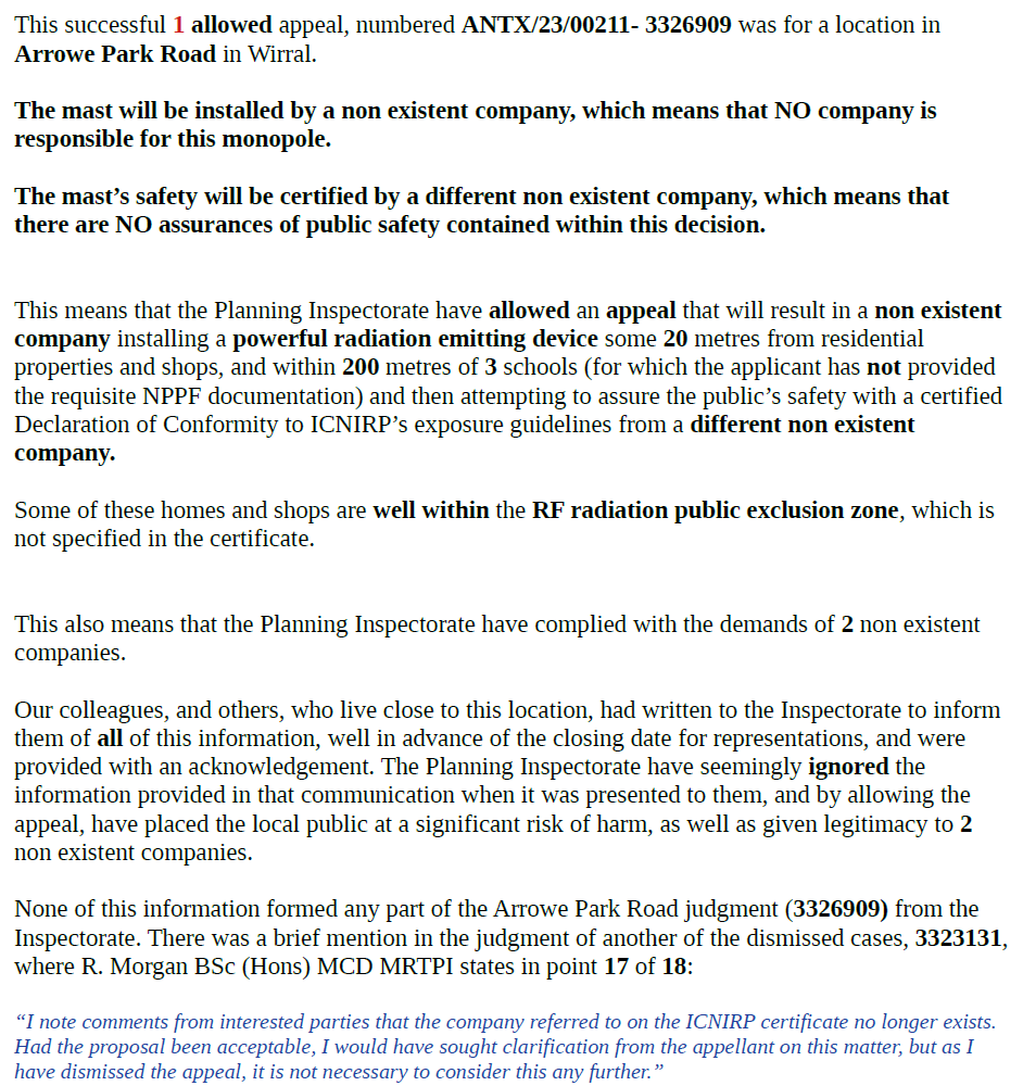Pingback: A Planning Inspectorate-approved 5G mast with BOGUS certification … | Wirral In It Together