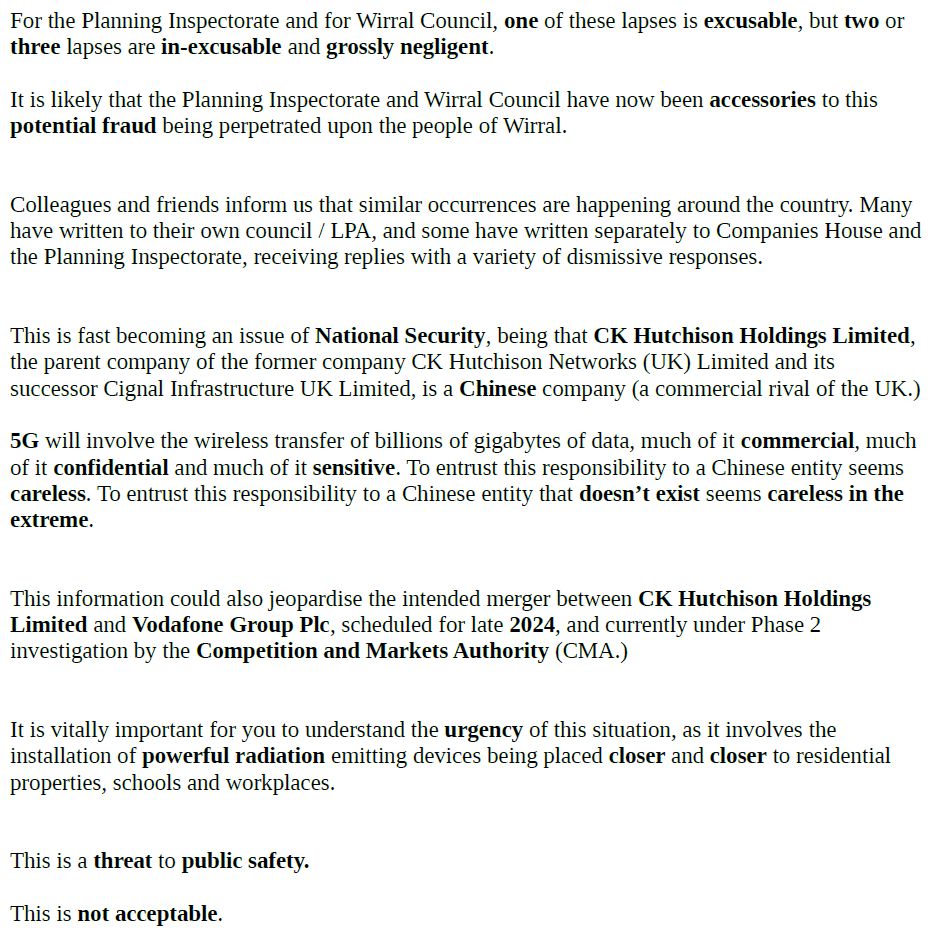 Pingback: 20th May 2024 … Receipt of 5G masts criminal complaint letter acknowledged today by Wirral CEO, Paul Satoor | Wirral In It Together