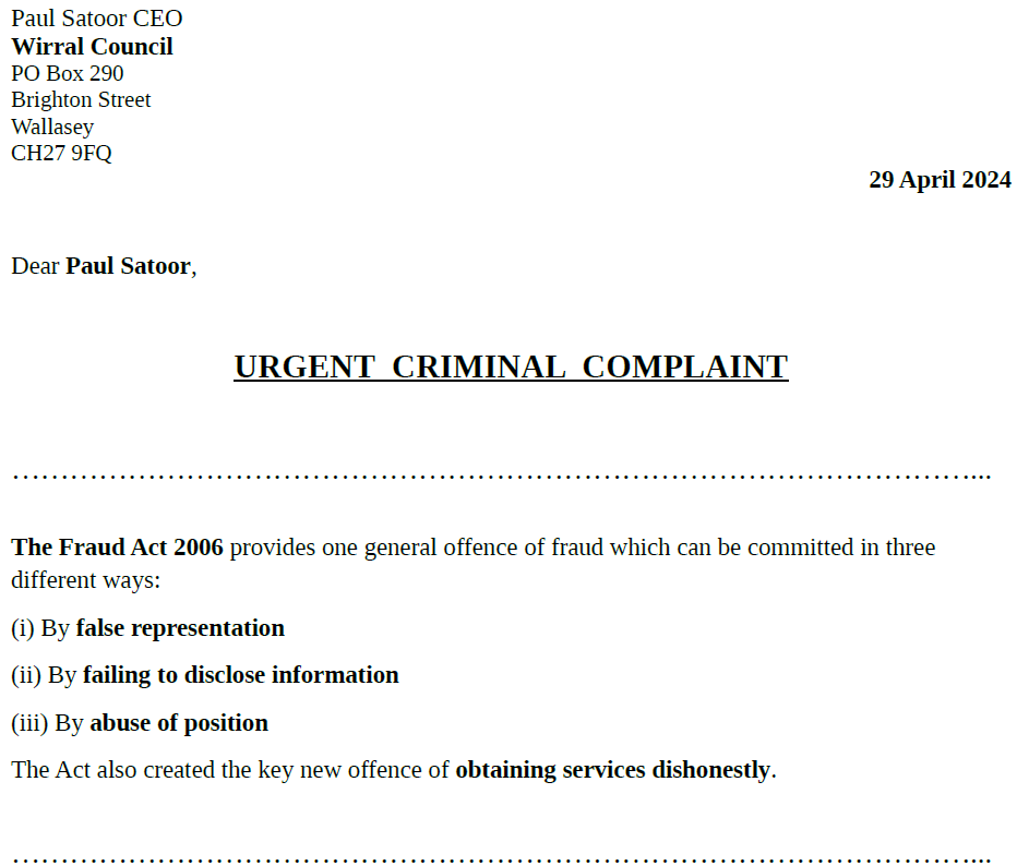 Pingback: ***THIS IS HUGE*** and involves alleged crimes that were not spotted by Wirral Council, who’ve been FULLY aware of them since May 2024 | A very important Email has been sent to my Labour councillor, Paul Stuart, the Council Leader | Wirral In It Tog