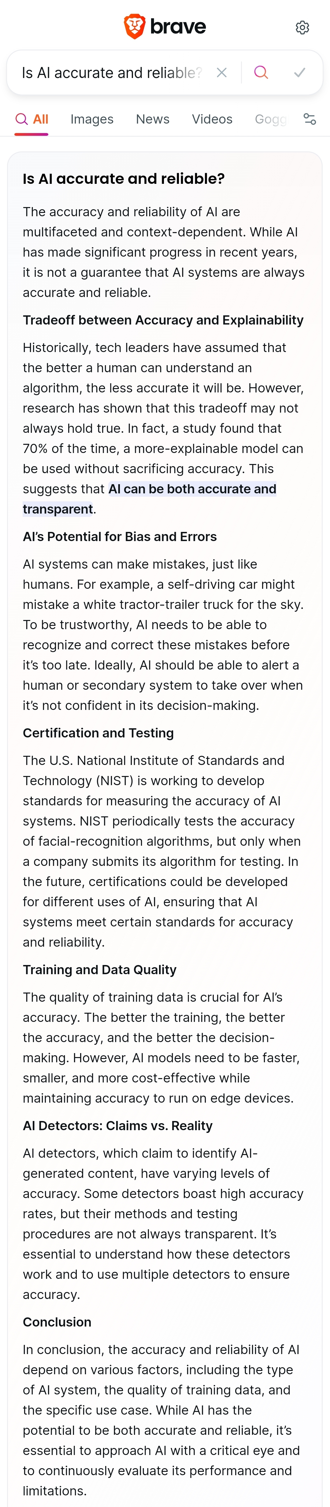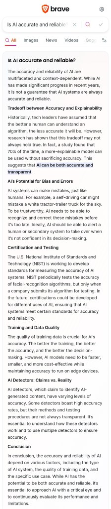 I asked AI if it was accurate and reliable? Hmmm. Can I trust the answer? ๐Ÿค”