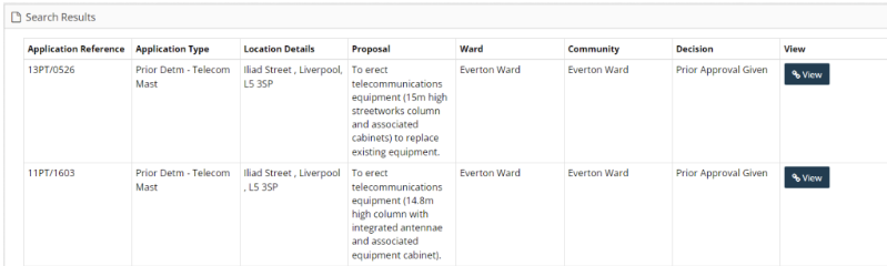 *I’ve since checked Liverpool City Council’s planning portal search facility. I’ve discovered it’s not possible to view the documents that would have been submitted with the relevant planning applications (below). Have they been removed? We don’t know. We’re in the dark on this.