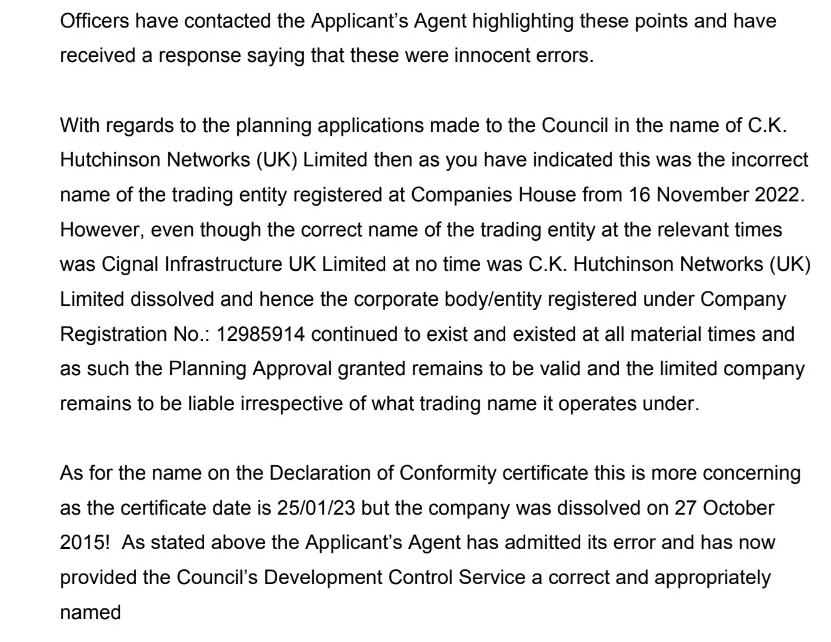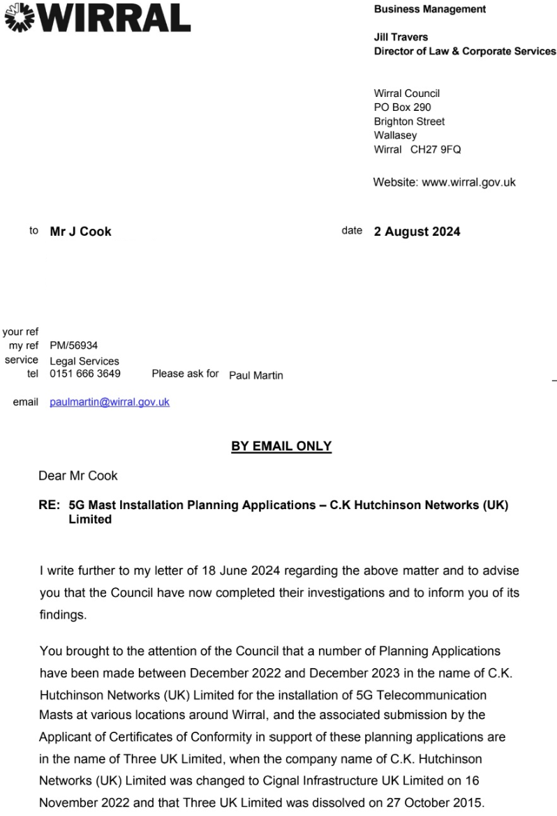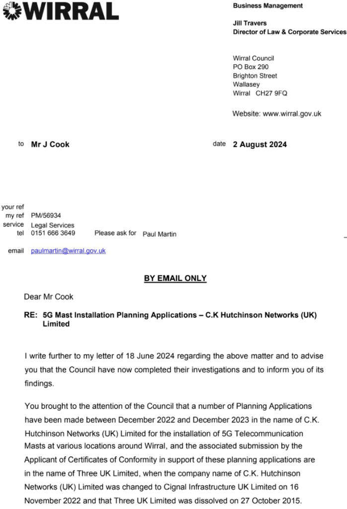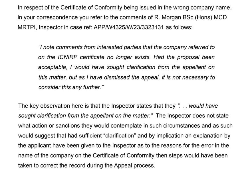 Feedback from a planning consultant on Wirral Council’s 37 x 5G bogus safety certificates
