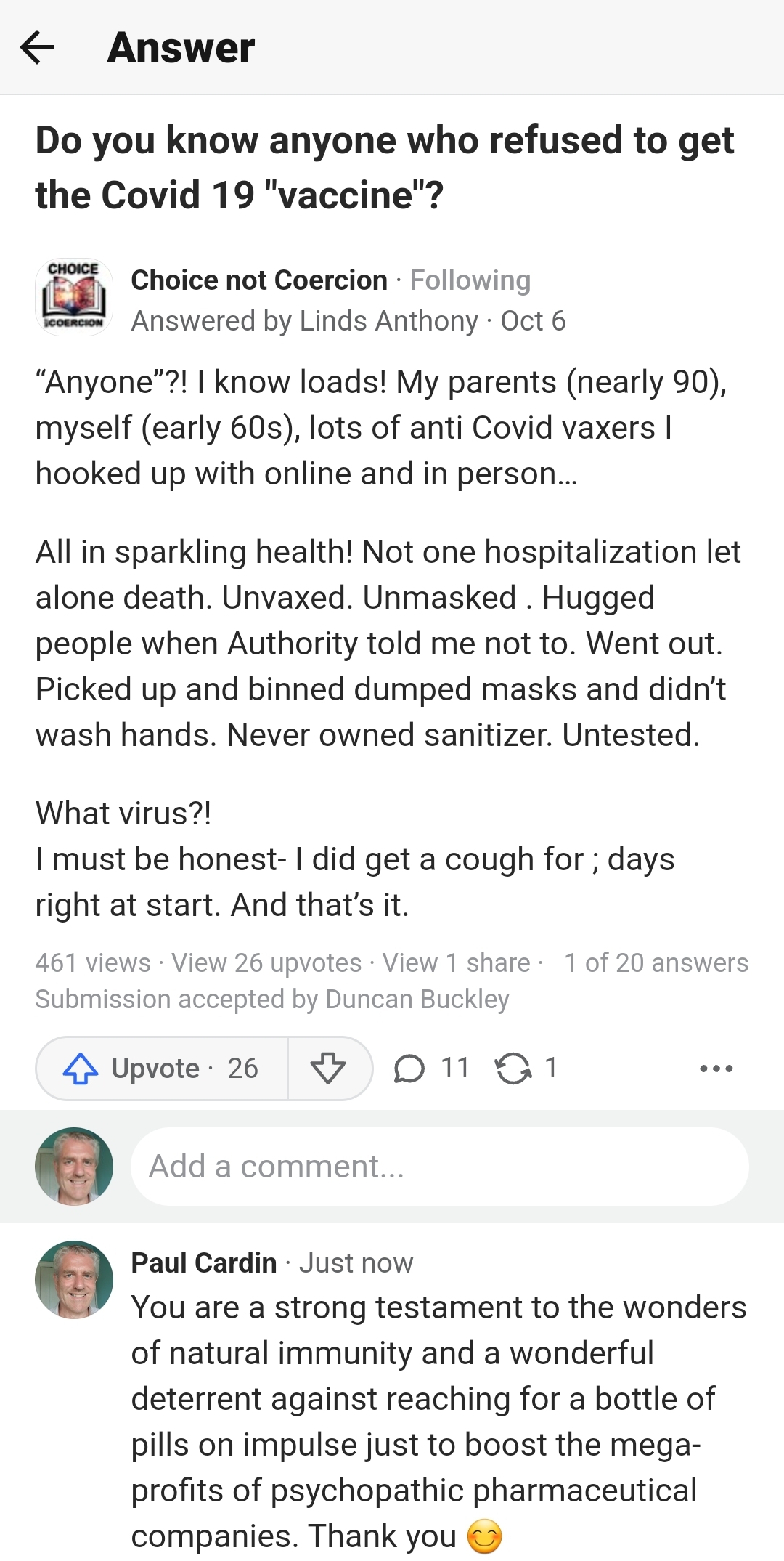 Do you know anyone who refused to get the Covid 19 “vaccine”?