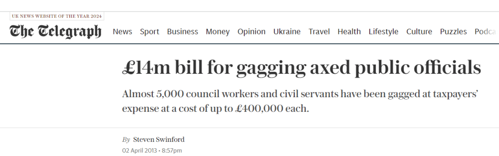 £14m bill for gagging axed public officials